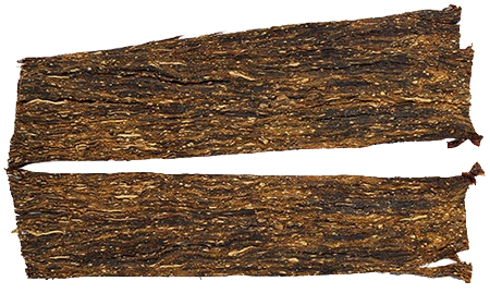 D’après ce que j’ai compris, la gamme de War Horse qui se décline en trois variantes, se pose pour objectif de produire aux Etats-Unis des tabacs qui s’inspirent des grands classiques de Gallaher comme le Condor. Et il est vrai que le beau plug carré, foncé et luisant rappelle les traditionnels plugs britanniques. Le nez fort parfumé s’inscrit lui aussi dans la lignée du St. Bruno, de l’Erinmore ou des scented Lakeland. J’y sens du massepain, des fleurs de mimosa, de la fève de tonka, une touche chocolatée et avant tout de l’anis. En découpant le bloc de tabac, on se rend compte qu’il est moins pressé qu’un authentique plug. En vérité, il se situe entre le plug et le cake et il est par conséquent facile à trancher et à transformer en brins.