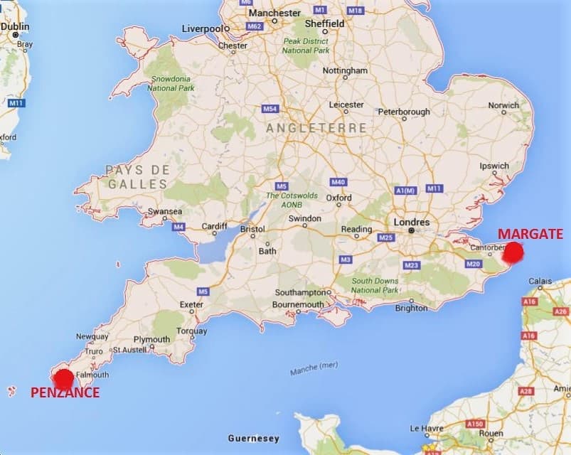 Le Penzance, en revanche, n’est pas léger. Il est presque à l’opposé. Géographiquement, c’est d’ailleurs exact. Margate est la ville qui se trouve la plus à l’Est de l’Angleterre. Penzance, elle, est la ville la plus à l’Ouest – planquée au fin fond des Cornouailles. (Guillaume, stp, pardon, mais tu peux mettre une carte, là ? S’il te plaît ? Merci !)