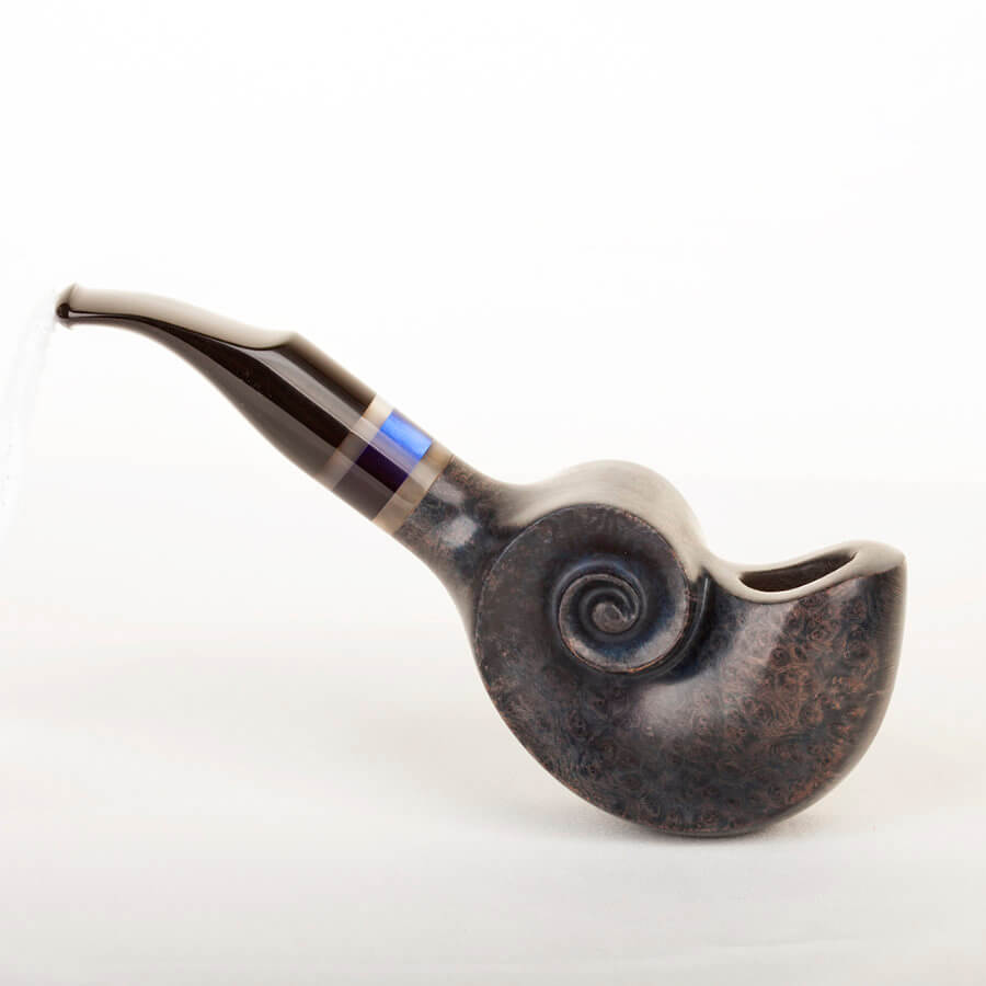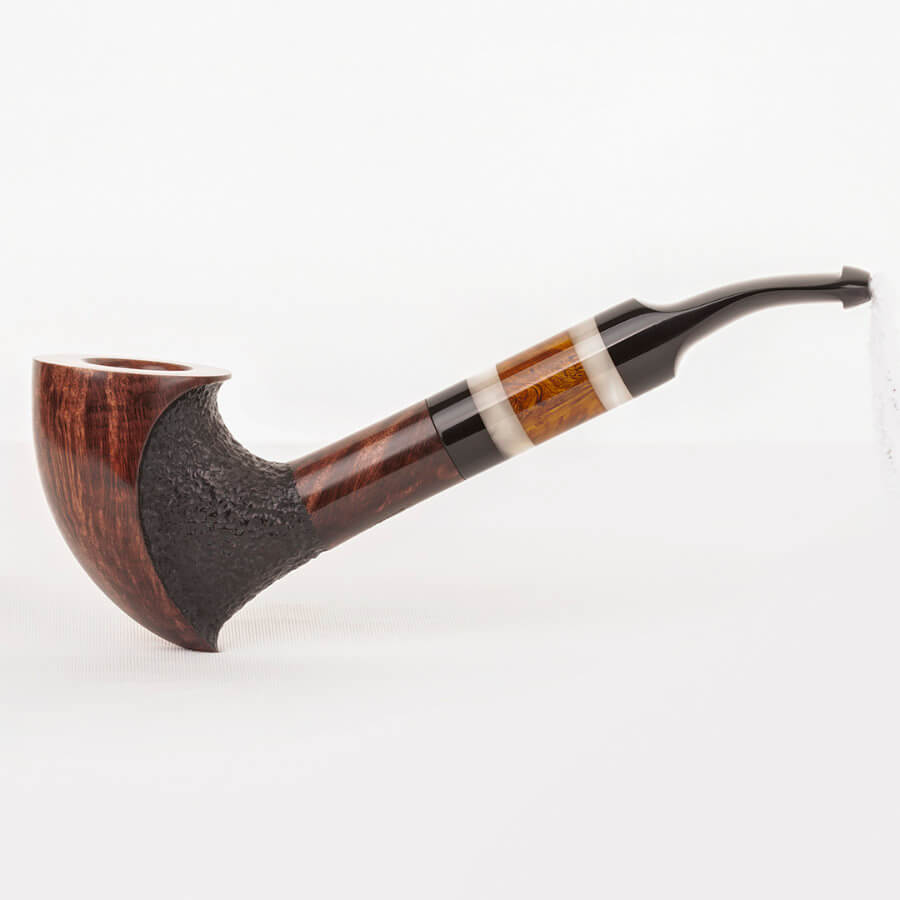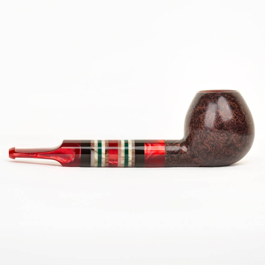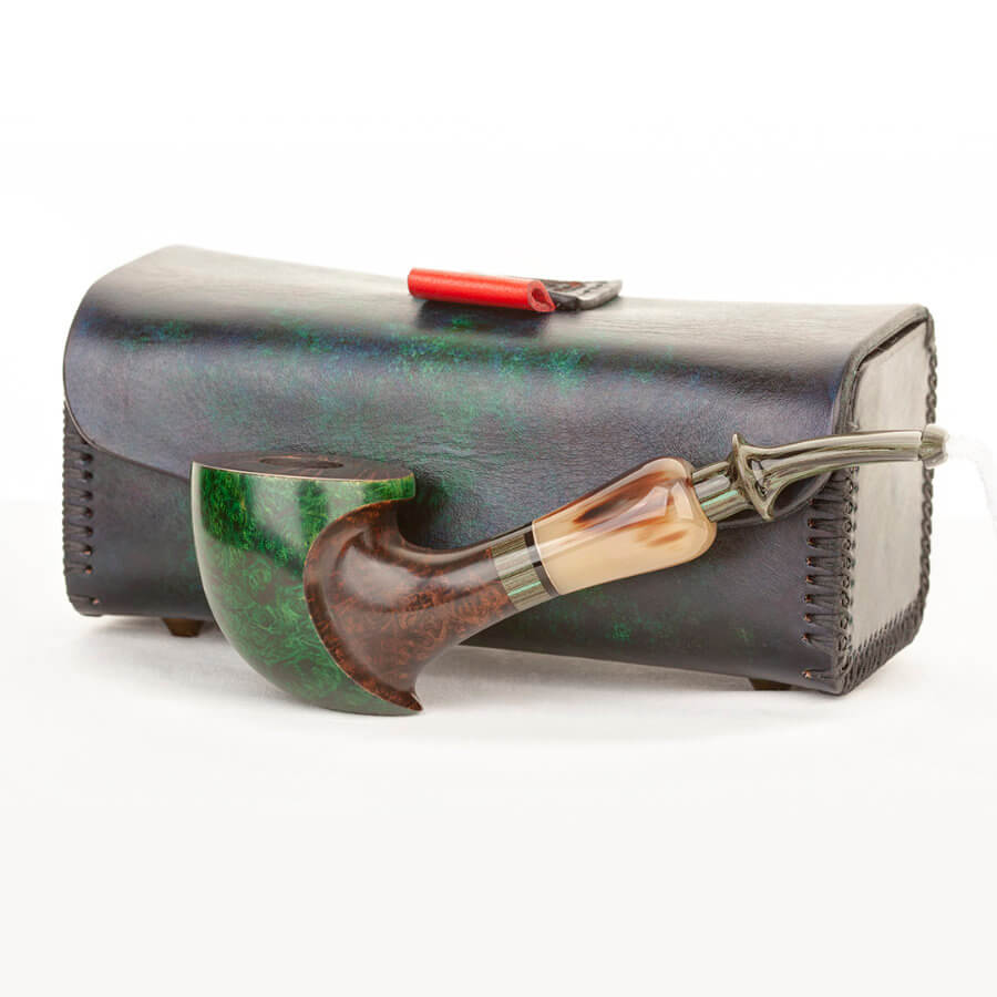 En 2022, il passe à la vitesse supérieure : sa bruyère vient de chez Manno, et l'ébonite, l'acrylique, les bois exotiques, ou le morta, d'Allemagne.