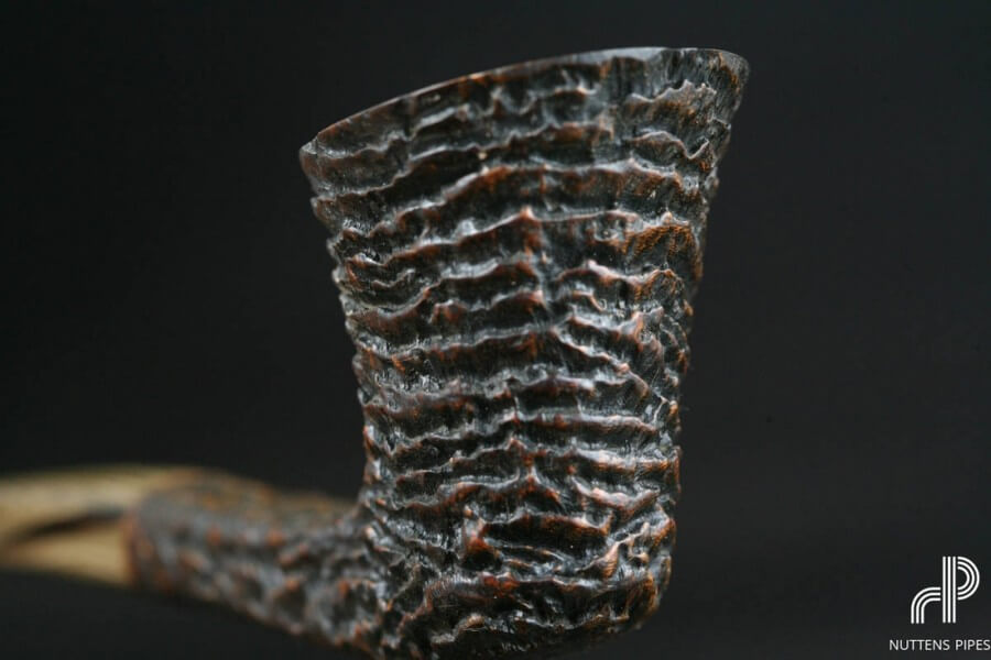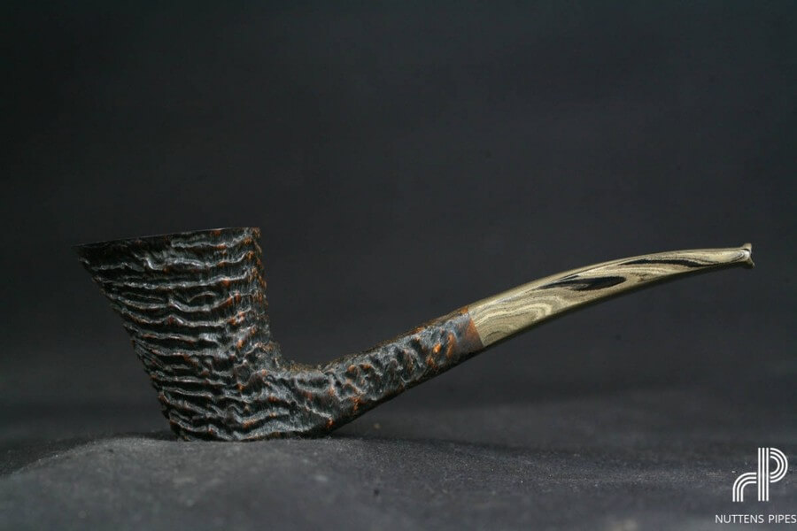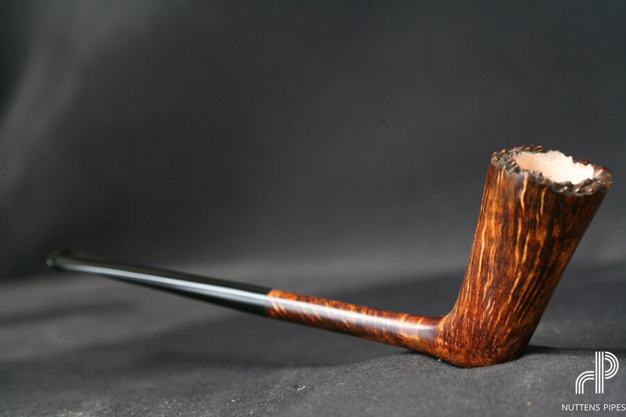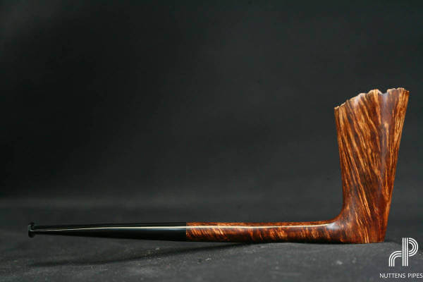 Bruno Nuttens est loin d’être arrivé. Il a encore un bon bout de chemin à parcourir avant de mériter le titre d’artisan pipier accompli. Pour preuve le fait qu’il lui arrive régulièrement de tâtonner avant de trouver les proportions justes ou des lignes fluides. Ou le fait que les transitions tige/tuyau ne sont pas toujours parfaites. Ou encore le manque d’uniformité de ses lentilles. Ceci dit, il est incontestablement sur la bonne voie. En témoignent entre autres ses sablages qui d’ores et déjà sont particulièrement réussis ou le manifeste progrès qu’il a réalisé au niveau de ses finitions. En outre, Bruno a bien compris que pour nous livrer de belles et bonnes pipes exécutées dans les règles de l’art, il faut un outillage performant et du bois de la meilleure qualité. Et par conséquent, il investit systématiquement ses bénéfices dans son atelier et récemment dans des plateaux de chez Mimmo. Finalement, son évident sens de l’autocritique qui lui permet de prendre ses distances et de juger son propre travail sans indulgence ni complaisance, démontre que Bruno Nuttens a la mentalité pour réussir. À suivre donc avec grand intérêt.