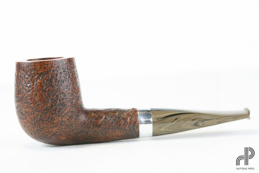 Passons aux bruyères. Mon premier achat, c’est une courte billiard dodue et finement sablée de la Série Custom, mais montée d’un tuyau entièrement fait main. Ces Custom au tuyau tourné dans la masse se reconnaissent à la tige marquée d’une étoile. La suivante, une longue et fine billiard lisse de la Vintage Collection à la bague en argent ancienne et fort décorative, est montée d’un tuyau prémoulé modifié. Après avoir examiné ces deux pipes, je conclus que Nuttens n’est pas un de ces génies de la pipe, tel Cornelius Mänz, qui dès ses tout débuts a su impressionner le connaisseur le plus blasé par son exécution et sa finition absolument parfaites. Non, Bruno me rappelle plutôt le jeune David Enrique à qui il a fallu peu de temps pour livrer du travail techniquement correct. Bref, à défaut d’être wow, c’est de l’ouvrage tout à fait respectable. Qu’en est-il du fumage ? La Vintage s’avère une bonne fumeuse de VA. La Custom, par contre, refuse d’être domptée, quel que soit le tabac que je lui propose. Shit happens.