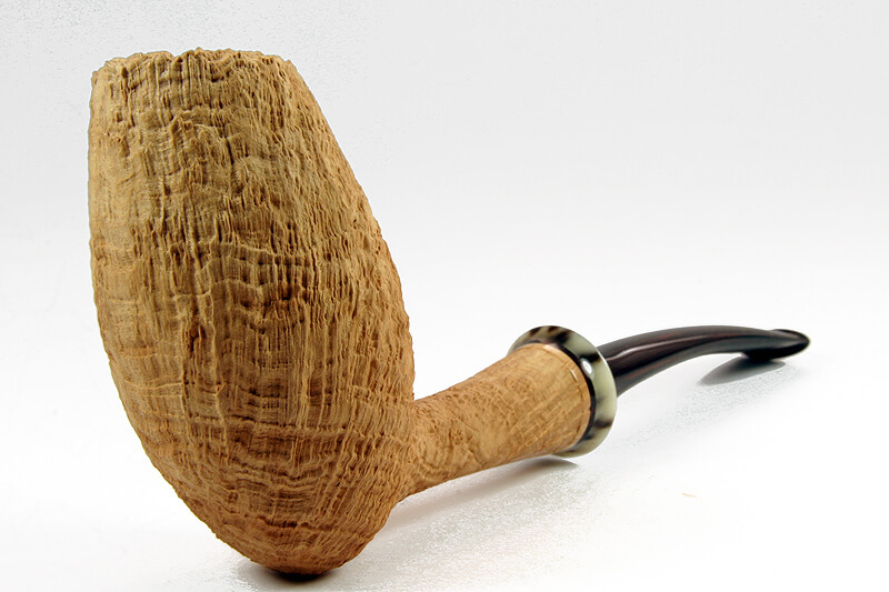 Et puis il y a autre chose qui gêne. Me gêne. C’est la conviction qu’un pipier qui a développé un style personnel et reconnaissable, a par définition plus de mérite qu’un autre à l’esthétique moins individualiste. Il me semble qu’à cet égard il faut nécessairement faire une distinction entre deux genres de pipiers. Bo Nordh a taillé d’innombrables pipes classiques dont les formes ne se démarquent aucunement. En même temps, il a créé du jamais vu : la ballerina, la ramses, l’elephant foot, la nautilus et j’en passe. C’est donc un pipier remarquablement complet et universel. Pareil pour Michail Revyagin : il n’a pas fait que des modèles novateurs et surprenants. Il a taillé par exemple des billiards, des bulldogs, des horns. Ce genre de pipier est-il plus accompli et plus complet qu’un Ruthenberg ou qu’un Bonacquisti ? Cela va de soi. Mais qu’en est-il de pipiers comme Larry Roush ou Wolfgang Becker ? Nul doute qu’au niveau technique leurs pipes sont difficilement surpassables. En outre, il est incontestable qu’ils ont un style original et reconnaissable au premier coup d’œil. Il faut donc conclure que ce sont de véritables maîtres-pipiers. Et pourtant je me demande si le roi de la pipe compacte et virile serait capable de tailler une elephant foot parfaitement réussie ou si l’obsédé de la tige surdimensionnée saurait nous livrer une irréprochable spaghetto dans le style de son homonyme italien. Rien n’est moins sûr. Se pourrait-il que ce genre de pipier, tout capable et reconnaissable qu’il soit, manque d’universalité ? La frontière entre un maître au style personnel et ce que nos amis anglophones appellent a one-trick pony, c’est-à-dire quelqu’un qui n’a qu’un tour dans son sac, me semble tout sauf nette.
