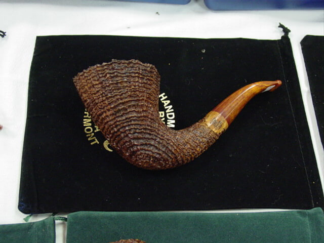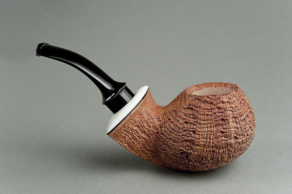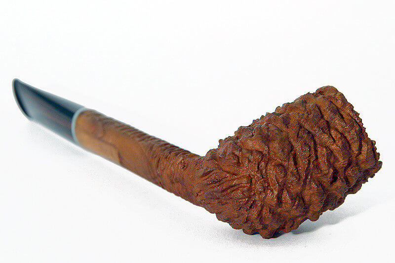 Cette évidente discrimination que doivent subir les brunettes, est-ce la faute d’Alfred Dunhill ? Vraisemblablement. L’inventeur de la pipe sablée, la légendaire Shell, l’a voulue noire. Ce n’est pas que je ne le comprenne pas. Evidemment quand on a garanti à sa clientèle que, quelle que soit sa finition, toute pipe qui sort des ateliers, jamais ne portera un point de mastic, la teinture noire est une bénédiction : c’est elle qui permet d’escamoter le mieux les défauts dans la surface du bois. Et voilà pourquoi la grande majorité des sablées aux quatre coins de cette terre de miséricorde est finie en noir. Ceci dit, depuis un bon demi-siècle on trouve aussi pas mal de blondes. D’habitude on qualifie leur teinte du terme anglais tan. Fauve en français. Là encore on décèle tout le poids de l’influence de la marque britannique qui avait introduit sa finition Tanshell en 1953. Cette teinture claire est rapidement devenue populaire parmi les producteurs de tous horizons. Et c’est logique. Dès qu’un pipier se rend compte, une fois le sablage terminé, que la tête a un beau grain et (presque) pas de défauts, il veut mettre en évidence ces qualités. Ce serait dommage de cacher cette belle surface sous une couche noire. Et par conséquent il opte pour une finition blonde, d’autant plus que le prix qu’il peut demander pour une tan est plus élevé que pour une noire. Plus récemment on a même assisté à un nouveau phénomène qui est l’aboutissement de cette logique : des pipes joliment sablées à la surface claire et uniforme, une denrée rare, sont laissées telles quelles, sans teinture ni cire. Ce sont les fameuses vierges.