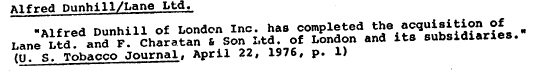 Dunhill achète Lane Ltd. en avril 1976. Le début exact de