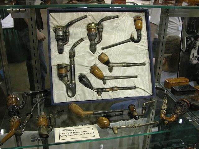 A 20 heures 45, devant une trentaine de participants, Jacky Craen, Sébastien Beaud et Antoine Grenard (nos trois représentants français de Saint-Claude) parlèrent des tabatières, de la fabrication de pipes en buis au 19ème siècle, de la découverte de la racine de bruyère et des artisans pipiers. Remarque, pour des français, ils se débrouillaient bien en anglais ;-)