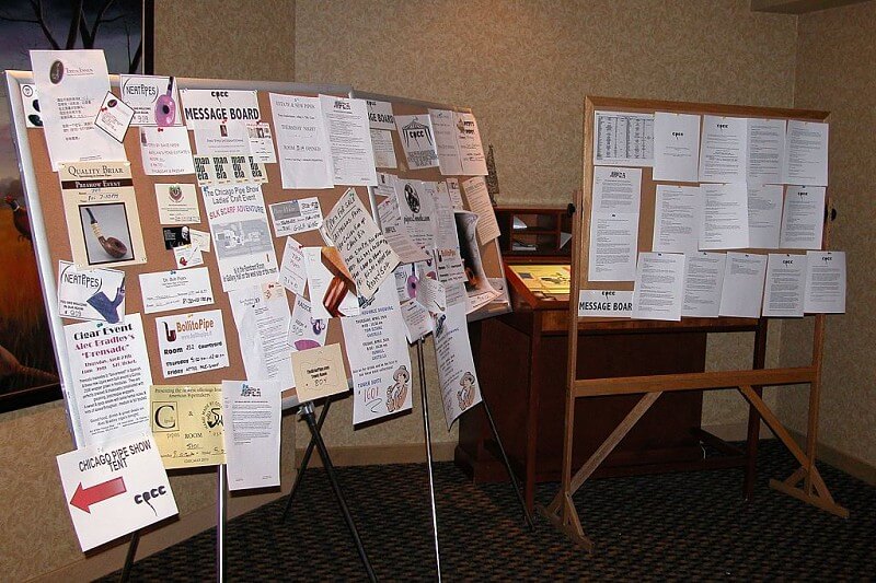 Cependant, dès l'entrée je reconnus les tableaux d'affichage remplis de toutes sortes d'information données par les exposants et conférenciers : lieu de rendez-vous, d'exposition,… Pour moi, c'était le signe que, malgré la nostalgie du temps béni où on pouvait fumer, le show était bien présent.