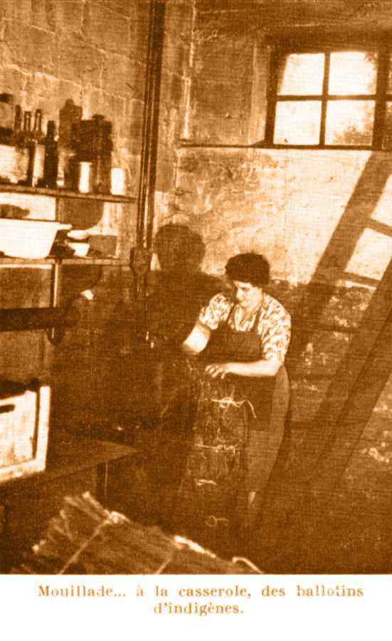 Les tabacs en feuille sont entreposés dans un local en bas du village, un stock tampon est cependant constitué dans les combles de l'atelier. Le cycle total de fabrication s'échelonne sur une semaine. Les « manottes » aux liens étrangers sont d'abord époulardées et les feuilles seront mouillées à la lance, tandis que les ballotins d'indigènes sont mouillés tel quel. Les pieds des manottes se trouvant dirigés vers les deux extrémités, ils sont simplement aspergés d'une ou deux casseroles d'eau : après une nuit de stockage les ballotins seront prêts pour le hachage et seront alors démolis au fur et à mesure.