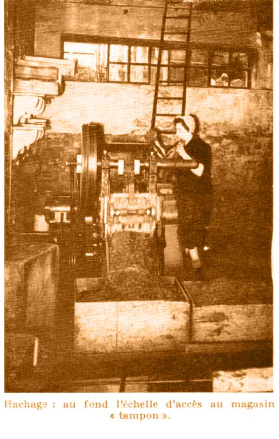 Une fois haché en coupe fine ou grosse, selon le produit désiré, le tabac, recueilli dans une caisse, est introduit dans le torréfacteur qui, en un quart d'heure, le séchera à point. Le taux d'humidité est estimé à la main par l'ouvrier. Le refroidissement se fait sur un tamis relié à un ventilateur et le tabac est alors prêt pour l'empaquetage.