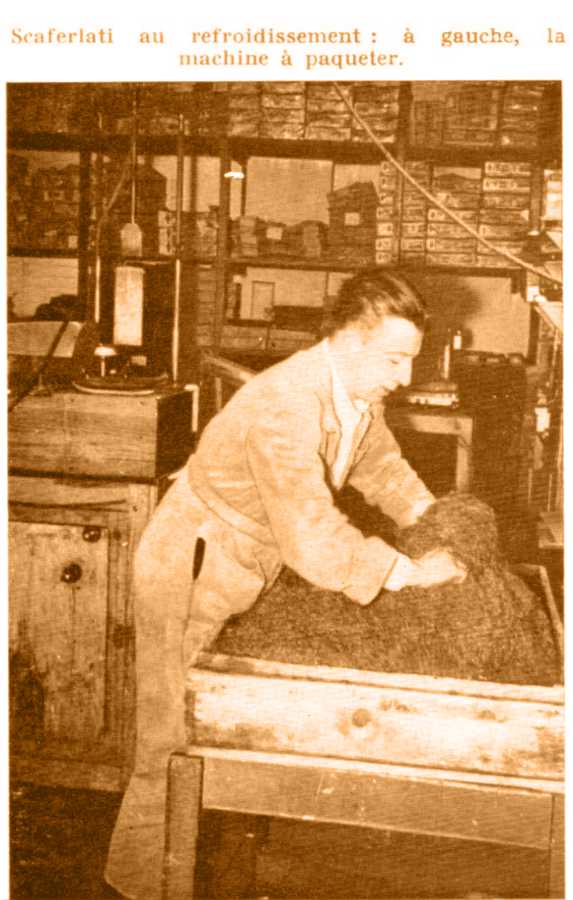 Trois d'entre eux considèrent cette industrie comme un appoint, un quatrième confectionne des cigarettes et, parallèlement, construit des machines à paqueter le scaferlati, conçues par un ingénieur du pays. L'une de ces machines fonctionne chez le cinquième à qui nous allons rendre visite.