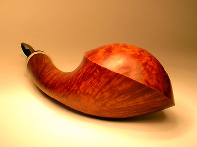 J’ai donc un faible pour les pipes de Jack, clarinettiste classique de son état. Il y a pour cela plusieurs raisons. Bien que dernièrement ses tarifs aient augmenté, Howell continue à présenter un excellent rapport qualité/prix : il vend à des prix concurrentiels des pipes qui requièrent souvent beaucoup de travail fastidieux. En outre, pas mal de ses pipes sont le résultat d’un sens esthétique tout personnel qui semble avoir tout pour me plaire. Ce que je trouve extraordinaire dans l’œuvre de Howell, c’est qu’il arrive à faire des petits chefs-d’œuvre originaux, sans que cet individualisme tombe dans le piège de l’ostentatoire ou de la prétention. Au contraire, quoique originales, ses pipes sont équilibrées et harmonieuses et se distinguent par des lignes pures et bien définies. Ensuite, et c’est chose plus rare qu’on ne le pense, à mon avis Howell maîtrise vraiment l’art de la teinture. Mes trois pipes arborent trois finitions complètement différentes et chacune est parfaitement nette, égale, profonde, réussie. Finalement, Jack fait des pipes confortables en bouche et au tirage facile et naturel, ce qui contribue à un excellent développement de la saveur. La egg et la apple sont dédiées aux mélanges à base de latakia syrien, la lovat virile et pourtant étonnamment élégante n’est fumée qu’avec du semois. Toutes trois restituent le goût du tabac avec précision et complexité. Rien à redire.