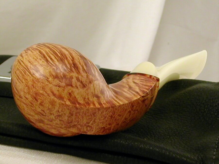 Je dois avouer que j’avais du mal à croire cette histoire. J’ai donc demandé à Maurizio s’il lui restait encore de ce bois pour me faire une pipe. Il m’a répondu qu’il n’en était pas sûr mais qu’il vérifierait. Quelques mois plus tard, au pipe show de Cuxhaven, voilà que j’aperçois Maurizio qui me regarde avec un grand sourire désarmant et qui me tend une pipe. Taillée dans ce fameux bois. Je l’ai bourrée et allumée et à cet instant même mon palais s’est enveloppé d’une fumée extraordinairement goûteuse. Promis juré.