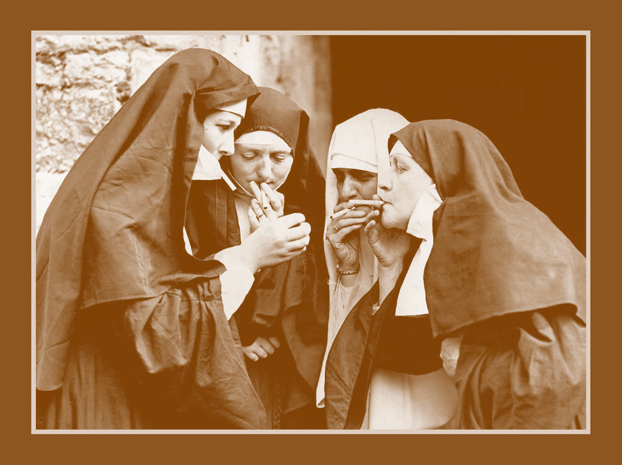 Ah ! Nous sommes déjà à None. Le temps passe vite en votre compagnie, et la mention de cette heure me plaît tant son nom me rappelle une bonne pipe avec les trois nonnes. Non, fratres ! Je vois l’effroi de vertu outragée dans vos yeux mais il n’en est rien. Je dis simplement qu’il existe un tabac nommé “Three nuns” que l'on met dans une pipe. Les mots peuvent avoir des doubles sens et honni soit qui mal y pense. Vous devriez prendre ma place, assemblée de fripons !