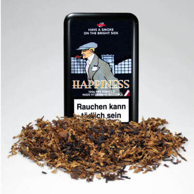Putain. Andreas Harm, le patron d’Esterval’s Pipe House (tecon-gmbh.de/), me tape sur le système. T’as commandé pour 550 euros de tabacs naturels et pour te remercier, il t’envoie deux piètres échantillons, dont l’un sent à mille lieues l’aro. Herzlichen Dank. Et, comble de l’ironie, cet aro s’appelle Happiness. C’est ça, oui.