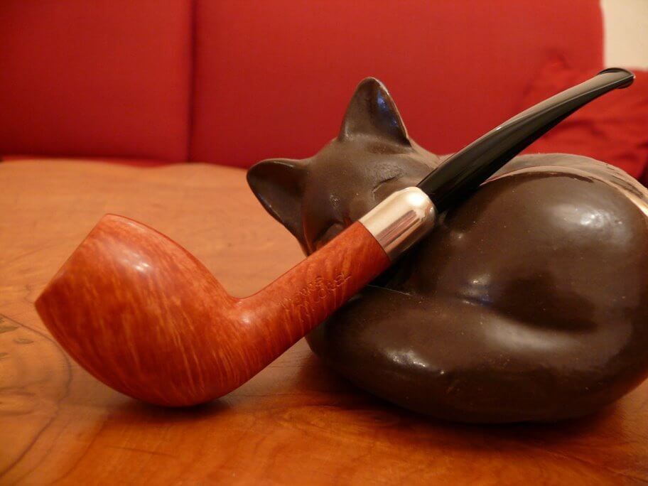 Autre phénomène sur lequel je sollicite l’avis de Pierre : un paradoxe étonnant. Alors que depuis des décennies l’industrie pipière a du plomb dans l’aile et se voit forcée de travailler avec de moins en moins de personnel, le nombre d’artisans indépendants ne cesse de croître. Alors, qu’est-ce qui explique que les artisans semblent pousser comme des champignons ? La plupart des soi-disant artisans ont un boulot stable, à côté. Tu le sais mieux que moi. Et il est plus facile de faire une pipe qu’un couteau par exemple. La plus conne des poules est capable de pondre un œuf. Ceci dit, il est évident qu’il y en a également qui sont doués. Quand je demande à Pierre si selon lui l’industrie pipière a encore un avenir, vu l’incessant déclin du nombre de fumeurs de pipe, il me rassure : Bien sûr qu’il y a un avenir. Il se vend quand même beaucoup de bas de gamme à tous ceux qui veulent fumer autrement que la clope. Ensuite c’est aux pipiers et aux détaillants de les diriger vers le beau.