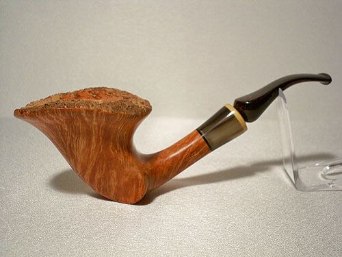 Je propose à mon interlocuteur de parler de Saint-Claude et du monde de la pipe en général. Pas de problème, mais d’emblée Pierre tient à marquer son attachement à sa ville natale : Je marque St. Claude sur mes pipes, je travaille avec des outils qui ont été fabriqués ici et je revendique d’être un vrai Sanclaudien, même si ça peut déplaire. Ce serment d’allégeance ne l’empêchera pourtant pas de se montrer par moments résolument critique. D’abord je veux savoir si selon lui Saint-Claude a toujours droit au titre de capitale mondiale de la pipe. J’ai droit à une réponse diplomatique : Dans l’esprit des Français oui. Puis je lui raconte qu’un jour j’ai vu dans un forum américain un fil dans lequel les membres tentaient de définir la typicité des divers styles nationaux. On avait abordé les styles anglais, italien, danois, allemand, américain et japonais. Rien sur la France. J’avais voulu écrire une contribution sur le style français, mais j’avais dû me rendre à l’évidence : je ne savais absolument pas quoi écrire. Je profite donc de l’occasion pour lui demander s’il existe selon lui un style typiquement français voire sanclaudien. La réponse me surprend : Non. Je lui soumets alors la constatation suivante : si dans les forums étrangers, des marques comme Stanwell ou Peterson ont des fans purs et durs, on y parle à peine des pipes françaises. Quelle pourrait en être la raison ? Morel se déchaîne : Les patrons pipiers sanclaudiens paient leur narcissisme, leur nombrilisme et leur mégalomanie. Ce n’est que justice. Ce n’est pas à toi que je vais l’apprendre ! Et quand je lui demande si c’est une injustice historique qu’à l’époque où Saint-Claude était encore incontournable, les producteurs anglais ont réussi à se bâtir très rapidement une réputation de qualité supérieure dont aucune marque sanclaudienne n’a jamais joui, Morel répète : Non, ce n’est pas une injustice. On en revient à ma réponse précédente.