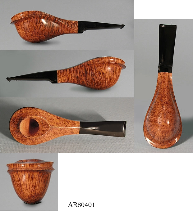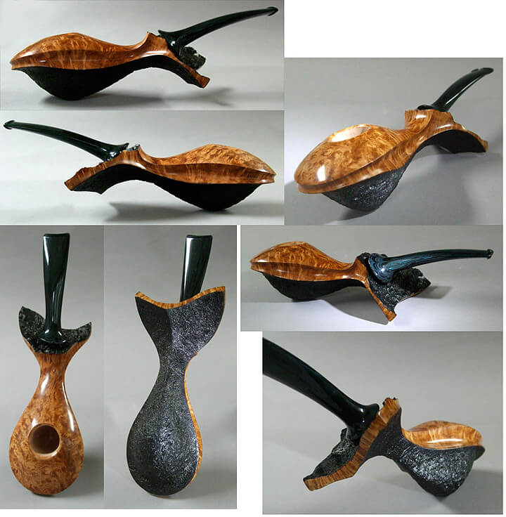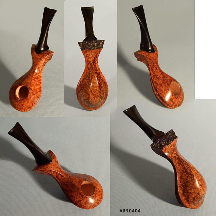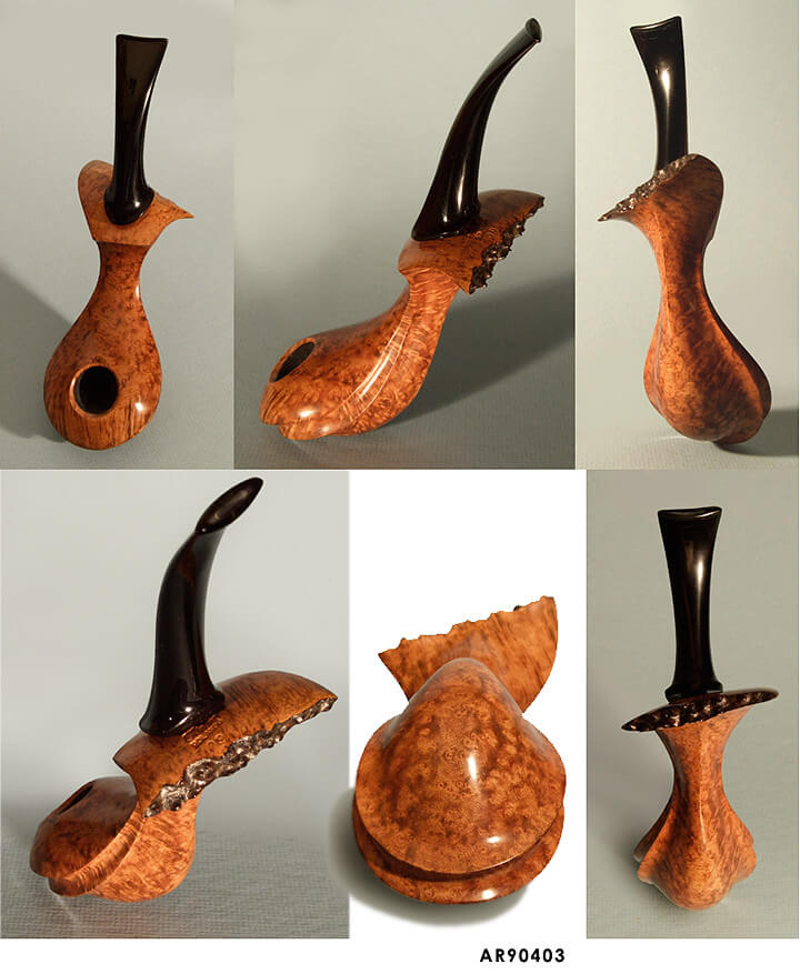 - En règle générale, je fais attention à ne pas trop étudier le travail des autres, pour garder un esprit aussi clair que possible quant au mien. Pourtant, je peux dire que j'admire le travail de Tom Eltang. Nous sommes bons amis, et j'ai passé quelques temps dans son atelier au Danemark, nous y avons travaillé ensemble. C'est ainsi que j'ai pu découvrir et admirer sa qualité d'exécution impeccable, et sa vaste connaissance dans le domaine pipier, Tom est le fruit d'une ancienne tradition de pipiers. Je tiens également à signaler le jeune Arita, que je rencontre régulièrement à Chicago. Ses pipes sont vraiment uniques, et dignes d'admiration.