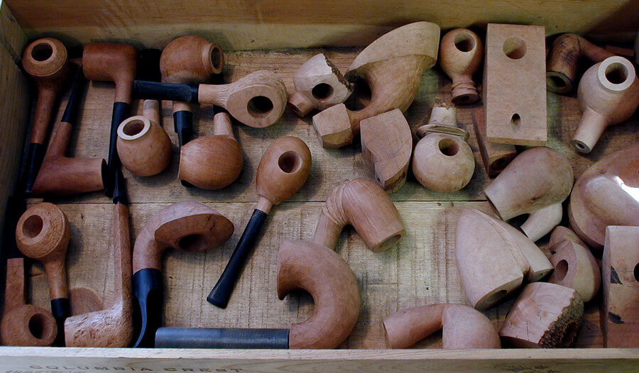 - De nombreuses pipes finissent au rebut, cela finit par donner un pourcentage assez important, notamment à cause des imperfections du bois. En moyenne, je produis entre cent et cent-vingt pipes par an, sans compter les commandes des pipe-clubs ou des forums, et il m'arrive à l'occasion d'accepter des commandes, mais toujours dans des formes déjà proposées. Et pas plus de cinq ou six par ans, pour éviter qu'elles ne se ressemblent trop.