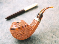 Certains utilisent un posemètre pour déterminer la combinaison correcte d'exposition. C'est très bien si vous en avez un, mais ce n'est pas nécessaire. Avec une peu d'expérimentation, je suis arrivé à ce qui fonctionne le mieux dans mon installation. Je mets toujours l'ouverture à F8.0 parce que cela fournit une bonne profondeur de champ, de sorte que le fourneau de la pipe et sa tige soient nettes, même si la pipe forme un angle avec le plan d'image de l'appareil-photo. Votre appareil-photo peut tenir compte de F11, de F16, ou même de F22. Rappelez-vous, plus le nombre devient grand, et plus l'ouverture devient petite, ce qui a comme conséquence plus de profondeur pour la netteté. C'est vraiment important pour le travail sur une table.