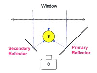 Placez un morceau de mousse blanche dure pour réfléchir la lumière de la fenêtre sur la pipe, réduisant de ce fait les zones d'ombre. Un deuxième morceau peut être employé si le sujet exige plus de lumière depuis l'appareil-photo. Le panneau réflecteur étant un peu difficile à voir sur la photo, voici un schéma de l'installation vue du dessus (S=Sujet; C=Camera).