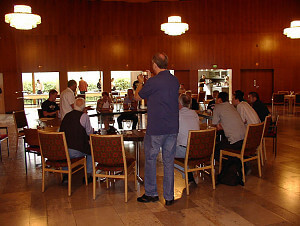 Le lendemain petit déjeuner très soigné. Je vois pas mal de têtes qui ont besoin d’aspirines. Quand je demande à Oliver Camphausen s’il a bien dormi, il me répond qu’il n’a pas fermé l’œil à cause du bruit. Du bruit ? Rien entendu moi. Alors il m’explique qu’à son étage Rainer Barbi s’était lancé jusqu’à 4h du matin dans un de ses interminables monologues sur la pipe. Et je vous jure : quand Rainer est lancé…
