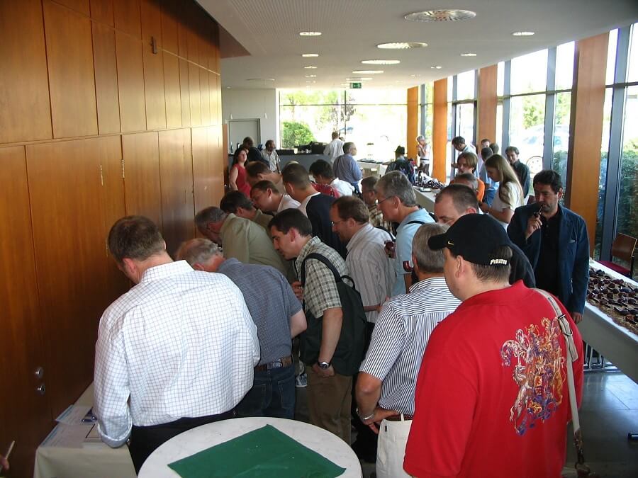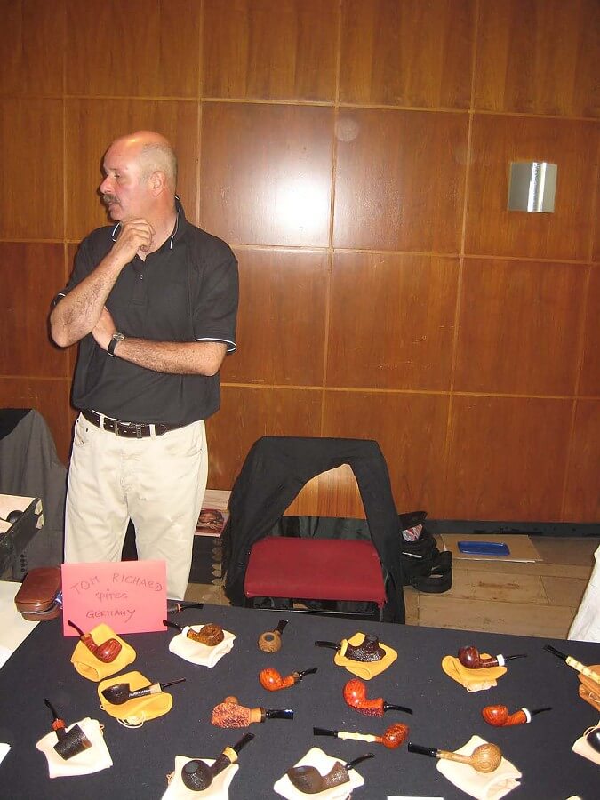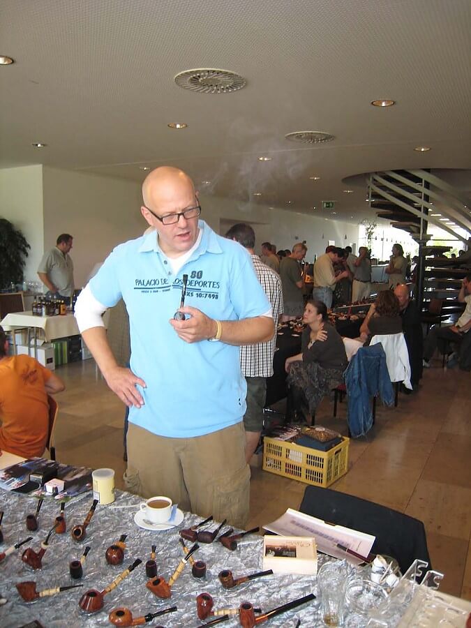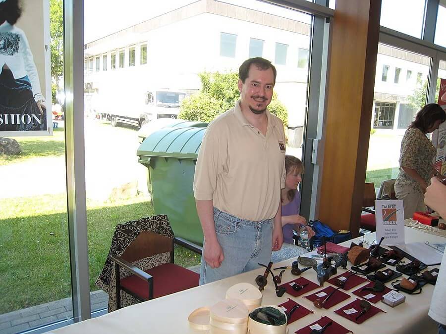 Alors, des conclusions ? Et bien, tout n’est pas si positif que ça. Moins de monde que l’année passée, probablement à cause du week-end caniculaire. Du moins, j’espère que c’est la raison et non pas les querelles intestines au sein de la communauté des fumeurs de pipes allemands de plus en plus divisée en clans. Moins de ventes aussi, ce qui fait que certains pipiers sont rentrés plutôt déçus. Et puis un stupide et regrettable incident qui a causé le départ prématuré de Per Billhäll et de Tom Eltang. D’un autre côté ce show était la consécration de Frank Axmacher et de Jürgen Moritz qui tous deux ont fait un tabac. Quant à David, malgré la rude compétition et en dépit du fait que pour la clientèle allemande, c’est un illustre inconnu, il a réussi à vendre davantage de pipes que certains artisans pourtant plus renommés.