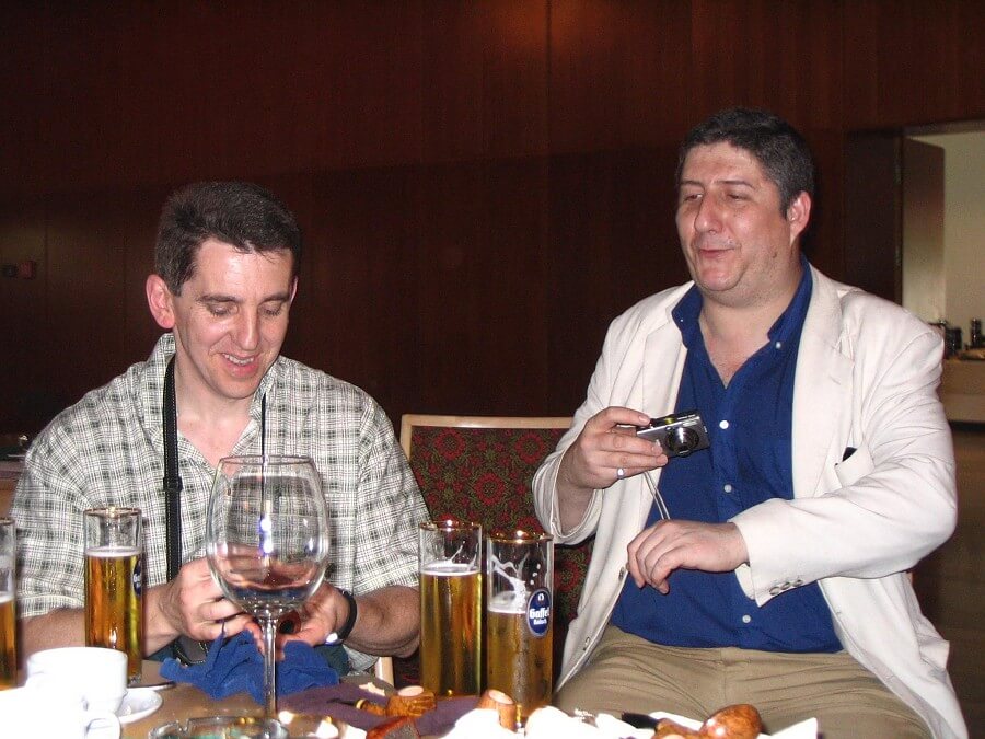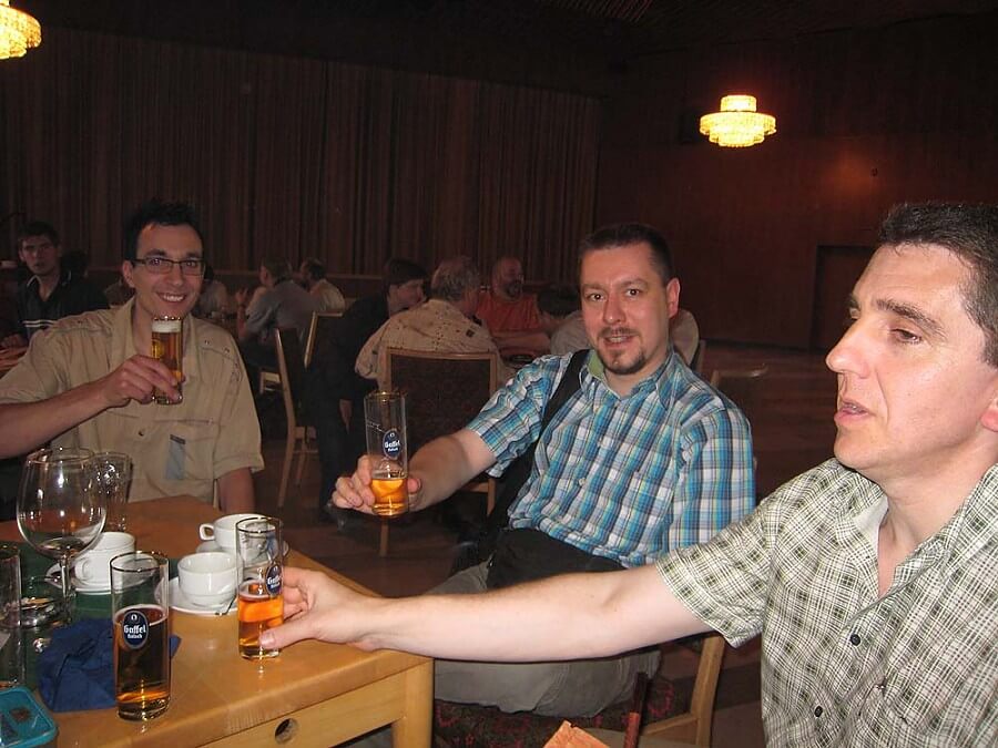 Georges, David et moi nous retrouvons sur une belle terrasse ombragée pour dîner. A côté de nous, il y a du beau monde : Frank Axmacher et Jürgen Moritz, Tom Eltang et Former, Tom Richard Mehret et Cornelius Maenz. Per montre à l’assistance quelques snail grade d’Eltang. La perfection faite pipe. Quand David les examine, il est bouche bée. Georges, lui, s’intéresse davantage aux filles brésiliennes à peine vêtues qui se mettent à danser à quelques mètres de notre table. Il regrette d’ailleurs ouvertement que le spectacle prenne fin si vite. David et moi par contre sommes contents d’être débarrassés du bruit de tamtam. Après le dîner nous descendons à la Weinstube d’Achim. La soirée entière, je la passe en compagnie de David, d’Heiner Nonnenbroich et de Rainer Barbi. Rainer, c’est un phénomène. Tout d’abord, c’est ce qu’on appelle " un caractère ". D’ailleurs, par le passé il m’est arrivé à plusieurs reprises de recevoir des courriels d’un Barbi furax, déchaîné. Alors qu’à d’autres moments, il s’est montré avec moi cordial, doux, serviable. En outre, Barbi, c’est une encyclopédie vivante qui sait discourir longuement et avec justesse de l’histoire de la pipe et des pipiers, des énigmes de Dame Bruyère, des diverses techniques employées par les pipiers de trois continents, des avantages et des désavantages de tel produit chimique, de telle huile ou de telle teinture. Et puis la lucidité avec laquelle il analyse le marché et l’avenir de la pipe, force l’admiration. Barbi, c’est à la fois un torrent verbal et un grand pédagogue. Quand il parle, on pend à ses lèvres et on se rend compte qu’on est en présence d’un esprit inquisiteur, analytique, passionné et d’une perspicacité rare. Bref, ces quelques heures passées en sa compagnie constituent pour moi un des meilleurs souvenirs de mon week-end