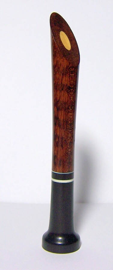 En retournant à la table de Georges, je découvre Wolfgang Becker qui garde la table de Cornelius. A ma surprise il m’appelle et il m’annonce qu’il a un cadeau pour moi. Ah bon. Si voici au moins cinq ans, j’ai commandé à celui que tout le monde appelle "Wolle" une Wespe, une de mes plus belles pipes, depuis, je n’ai plus eu aucun contact avec lui. J’ouvre le petit paquet et me voilà en face d’un superbe bourre-pipes. Simple et pur, résolument moderne, cette petite merveille combine de l’ébène, de l’ivoire, de l’amourette et du buis. C’est beau, très beau.