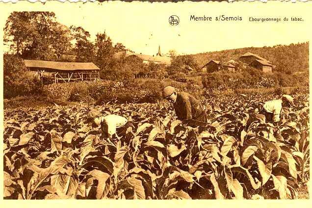 De 1855 à 1880, l’herbe à Nicot avait conquis quelques ares… Mais dès 1895, elle accuse déjà des hectares…Bohan pris la tête avec 23 hectares, Alle suit avec 11 hectares… Vers 1905 on dénombre sur la Semois près de 7 millions de plants, près de 9 millions en 1910 sur près de 400 hectares… A ce moment, Bohan est toujours en tête de liste avec 65 hectares et 1.500.000 plants de tabac ; Alle atteint les 50 hectares avec 1.250.000 plants, Frahan cette fois est entré dans le jeu et Rochehaut arrache la troisième place en recensant 37 hectares…