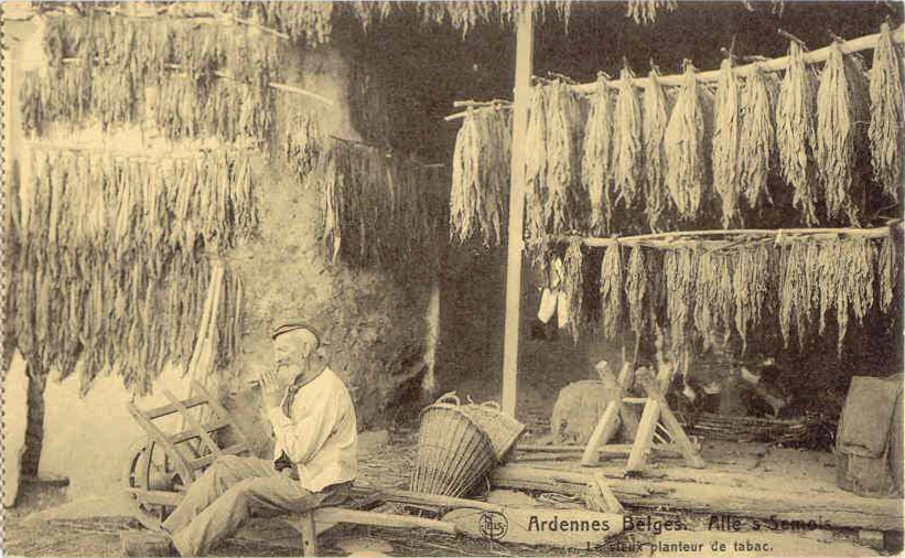 Et d’un coup ce fut la ruée ! La fièvre du tabac gagna la vallée de la Semois, et ce merveilleux endroit changea donc de visage, nous voici dans le petit Cuba !!! Les champs de colza n’existaient plus depuis que le pétrole d’éclairage permettait d’y voir mieux, le chanvre disparaissait avec les tisserands ; mais non content d’occuper la place ainsi devenue disponible le tabac évinçait les autres cultures et s’imposait sans partage… Envahissant comme une mauvaise herbe, il fait de la Semois la vallée du tabac et prétendait même conquérir les hauteurs si on laisse parler les statistiques…