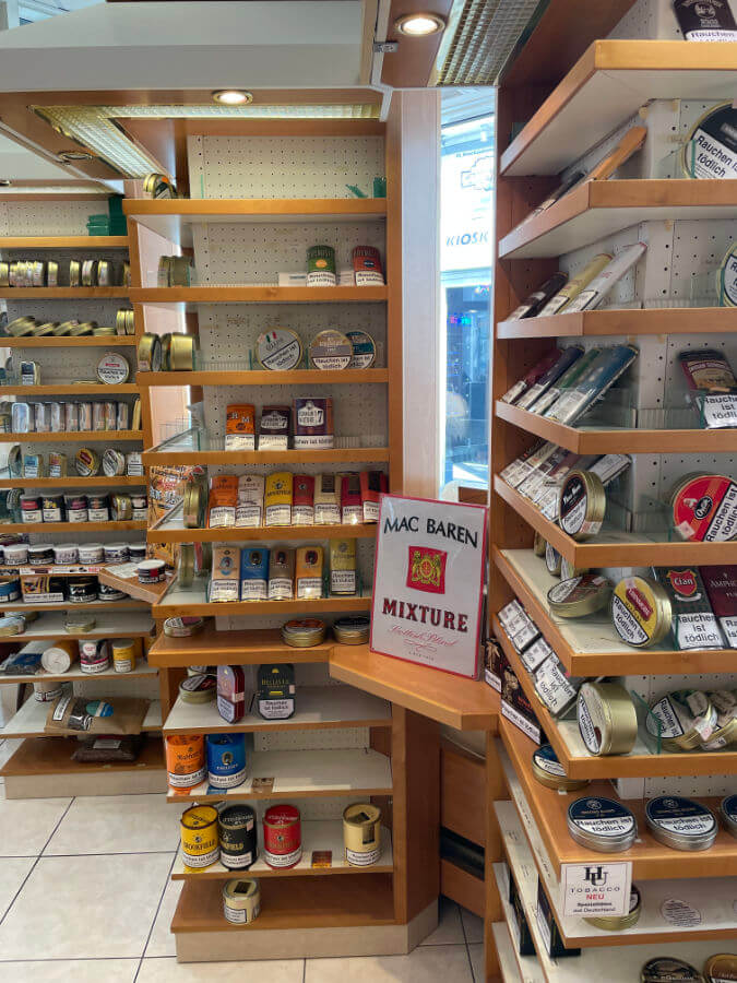 À deux pas du Rathaus, le tabac Stephan MEIER, offre un magasin vaste où l'on a plaisir à acheter. Le patron est cordial et connaît son sujet. O n y trouve une très large gamme de tabacs tous exposés sur présentoir où l'on peut de servir. Il y les tabacs de l'année de plusieurs marques. Mais surtout il y a une trentaine de mélanges-maisons qu'on a tout le loisir de pouvoir humer en toute tranquillité pour pouvoir faire son choix. Renseignement pris ces tabacs mises en vente sur leur site est envoyer à l'étranger. Il y a une large choix de pipes à tout les prix dont le site donne une petite idée. (Guillaume M)