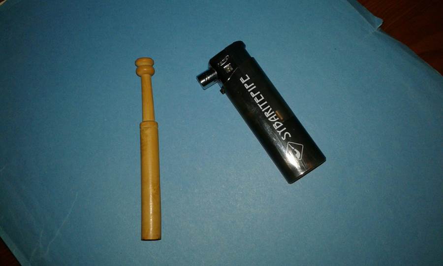 Je suis donc reparti avec mon butin, somme toute assez modeste car mon budget était limité, ainsi qu'avec deux petits cadeaux : un briquet à pipe estampillé Sybaritepipe et un tasse braise original. Il s'agit en fait d'un bâtonnet de broderie, en bois très dur. Jordi a eu l'idée d'en détourner l'usage en voyant une vieille voisine travailler. Depuis, elle lui en livre régulièrement...