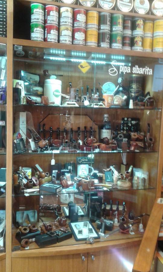 À 100 mètres de la Plaza Mayor, dans la ravissante Calle Bravo. ce magasin ne fait pas dans le grand luxe. On y vend un peu de tout, du narghilé de compétition â des vases d'un goût discutable, en passant par quelques bouteilles de Rioja. Mais on y trouve aussi des pipes (dont quelques jolies Larsen (en solde quand j'y suis passé), et un choix de tabac plus qu'honorable. Des aros de toute sorte. Mais aussi des virginias (MacBaren, Capstan, etc.); des "bruns"; et un panel d'Anglais satisfaisant (Vintage syrian, quelques Gawith, tous les ex-Dunhill refaits par Peterson...). Bref, il y a là de quoi se cajoler la papille, après se l'avoir saoûlée aux délices gastronomiques Sègovilliens... succulents. à défaut d'être très diététiques.