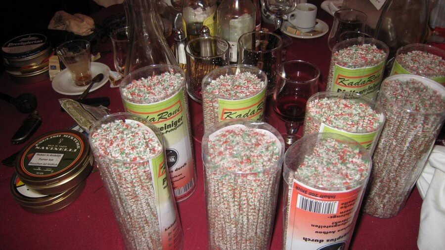 Nous sortons nos pipes, nos tabacs, c'est l'avantage d'avoir une table ronde, on peut poser tout ça, je ne dis pas ranger, au milieu.