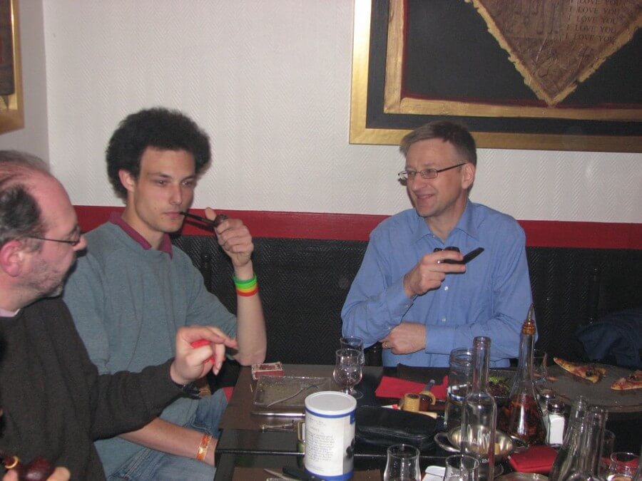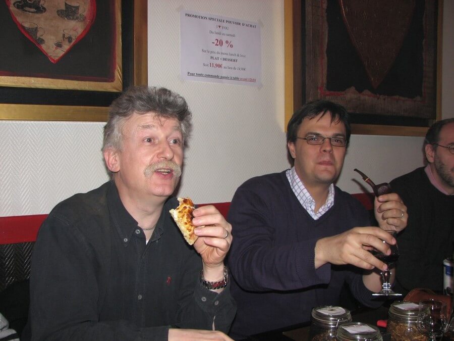 Voici donc venu le temps de notre dîner, pour clore l'hiver. Nous nous retrouvons encore au I Love You Caffè, le havre des fumeurs, de pipe ou de cigare. Quand j'arrive avec Thierry, Didier est déjà là. Il n'en revient pas que nous puissions nous adonner à notre vice. Il sort de suite un étui à lunette, avec ses pipes du soir. Didier a deux étuis à lunettes, un pour ses pipes, le plus gros, un autre pour... ses lunettes.