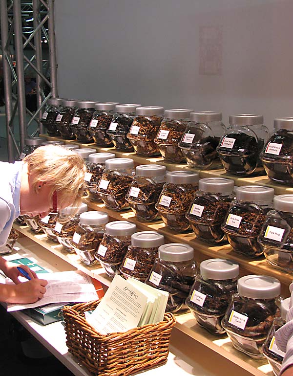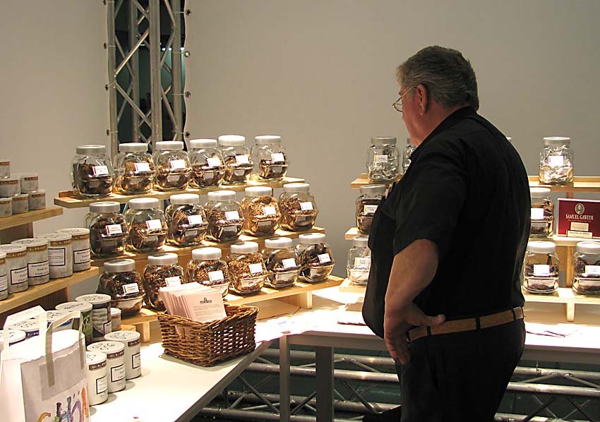 Très accueillant, Daniel s'empresse de me renseigner sur les différents tabacs de ces gammes présentées (Samuel Gawith, Gawith et Hoggarth, Cornell et Diel, GL Pease) et de me préparer de nombreux échantillons de ceux qui m'intéressent.