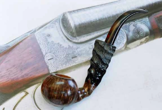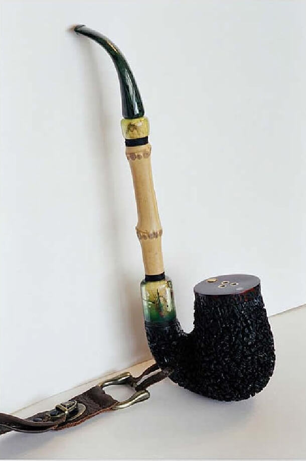 - Vous vivez au Canada, aussi est-il naturel que dans une si belle nature, vous soyez devenu amateur d'activités de plein air. Vous chassez, vous pêchez, et c'est pourquoi il y a dans votre œuvre des pipes spéciales à l'intention de vos amis dans ces cercles. À côté des matériaux que vous utilisez pour créer les pipes à thème, je peux aussi y sentir une sorte de tradition. Comment cet aspect de votre travail se cristallise-t-il, et qu'est-ce qui le caractérise ?