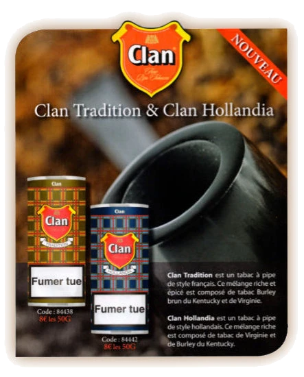 Ces deux tabacs ont une base commune assez marquée, avec un peu plus de brun dans le tradition probablement. Bizarrement aucun des deux ne me rappelle vraiment le Clan d'époque, qui était à mon souvenir plus doux et aromatiques que ceux là, mais ça commence à sérieusement dater (fumé la dernière foi en 1995)