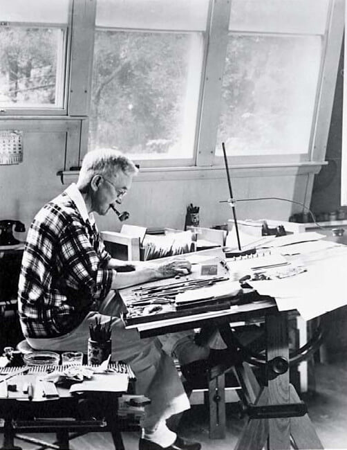 un voyageur, un producteur de films et le fondateur de Bear Archery, société qui