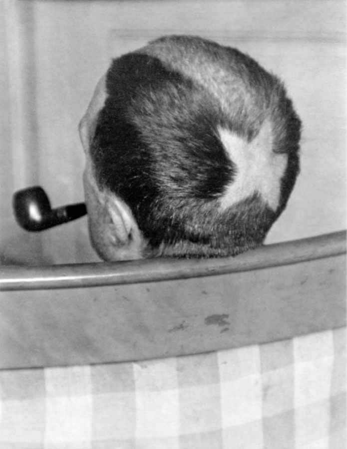 Tonsure, photographie du crâne de Marcel Duchamp tonsuré en forme de comète