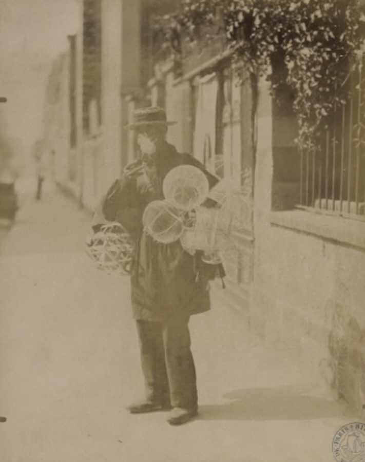 Marchand de paniers à salade et casiers à bouteilles fumant la pipe, Paris
