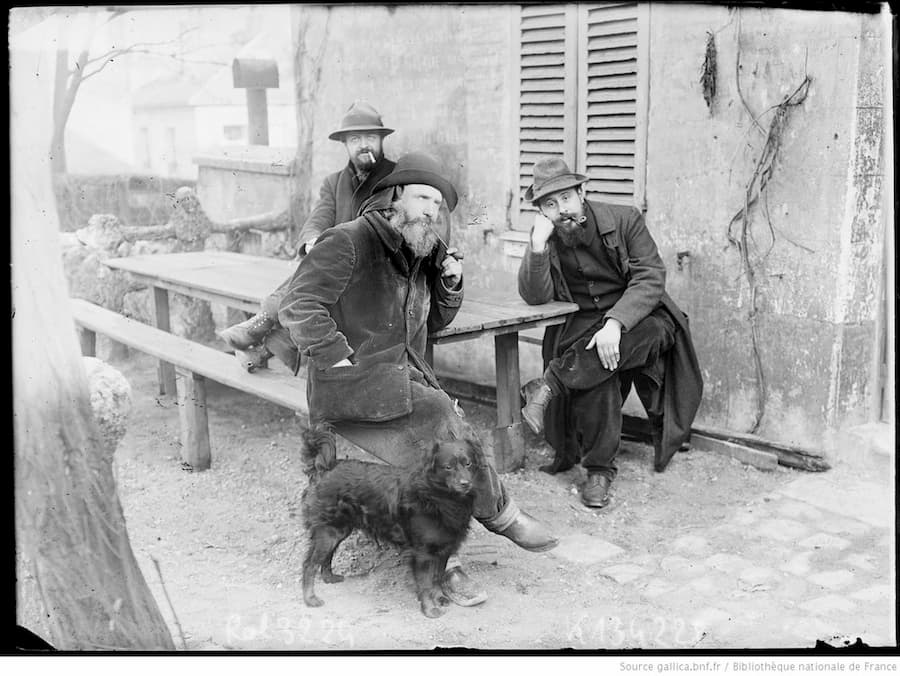 Trois hommes attablés au Lapin agile