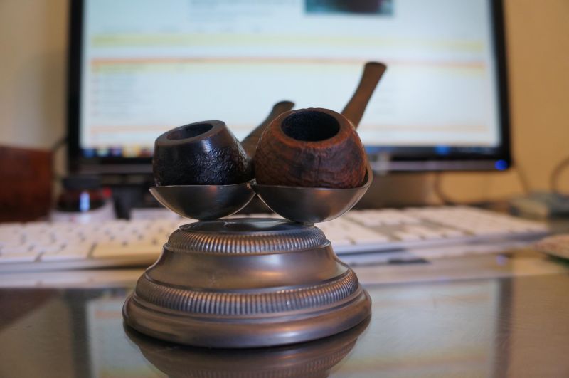 Pipes en bruyère. Brule gueule Nixon, et pipe Ropp. Repose pipe en étain.