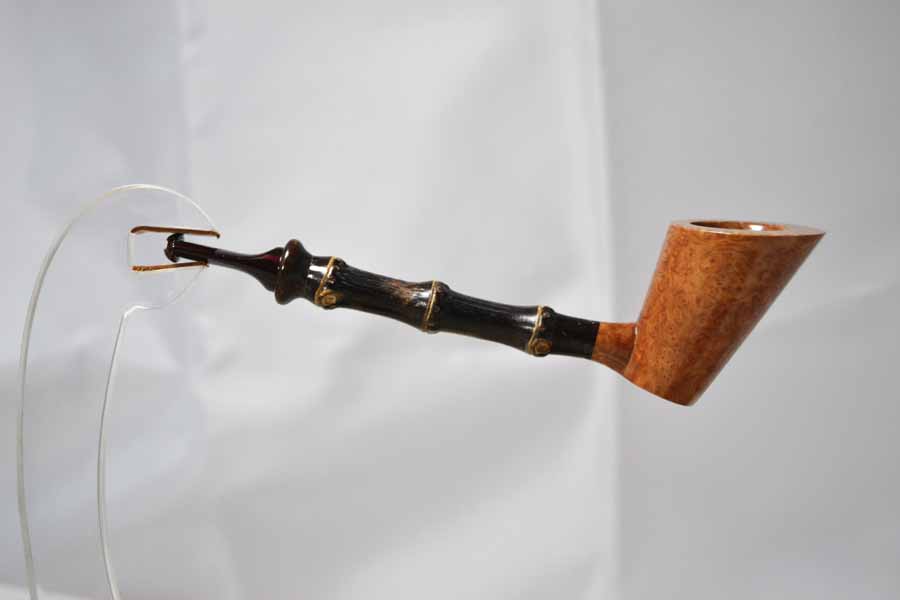 Ses pipes sont en bruyère italienne, mais aussi en morta. Il renouvelle son stock tous les deux ans, avant de laisser reposer le bois dans son atelier pendant quatre ans.