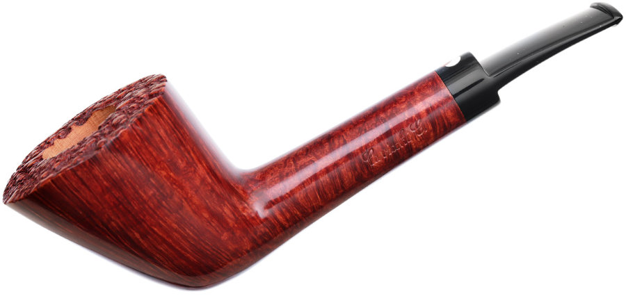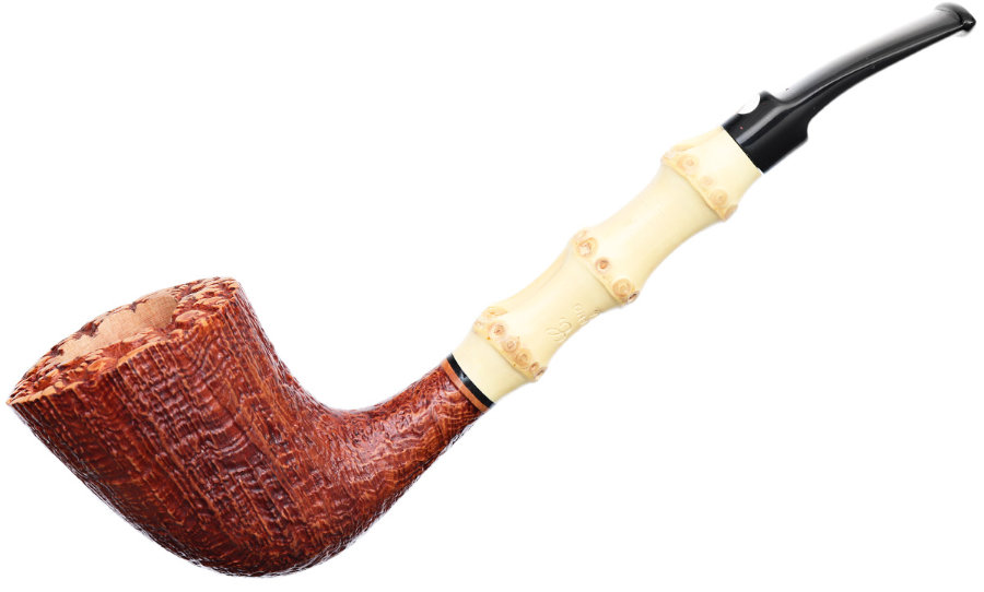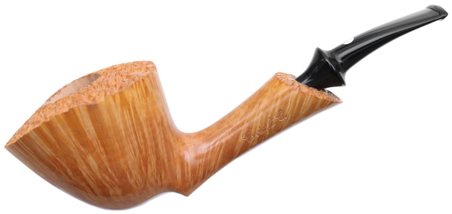 Il utilise des tuyaux en acrylique, polis par sa femme Daniela, qui s'occupe aussi des finitions des pipes lisses, et du guillochage des autres.