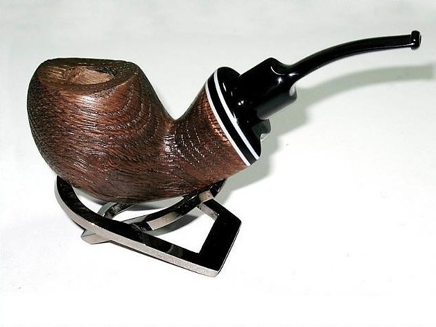 Sa bruyère vient du Monténégro, il peut la laisser reposer, ainsi que ses autres bois, entre deux et cinq ans. Ses tuyaux sont en ébonite ou en acrylique. Il propose toutes les finitions, sa préférée étant, pour les morta, celle pour laquelle il utilise une brosse en laiton.