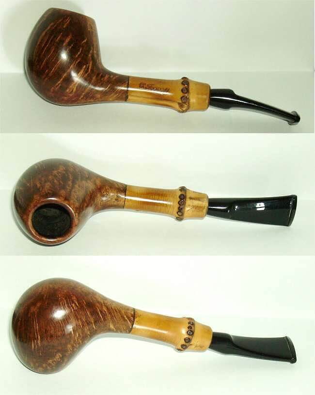 Ses tuyaux sont généralement en ébonite, il utilise aussi l'acrylique, mais aime à ajouter des tiges de bambou à ses pipes sablées.