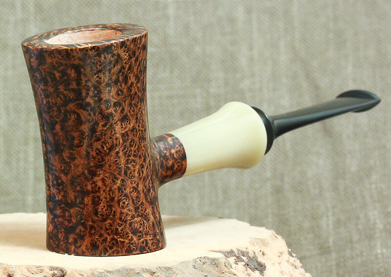 Pour ses tuyaux, il emploie l'ébonite, et pour les bagues, des bois exotiques - ou des os de mammouth !