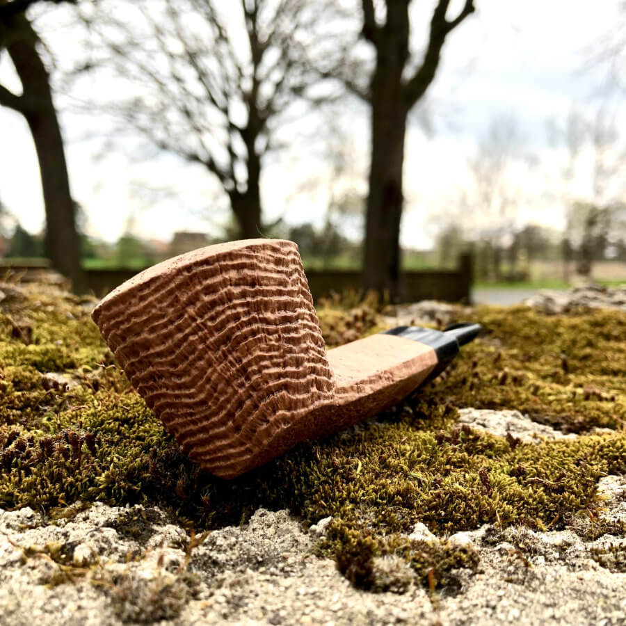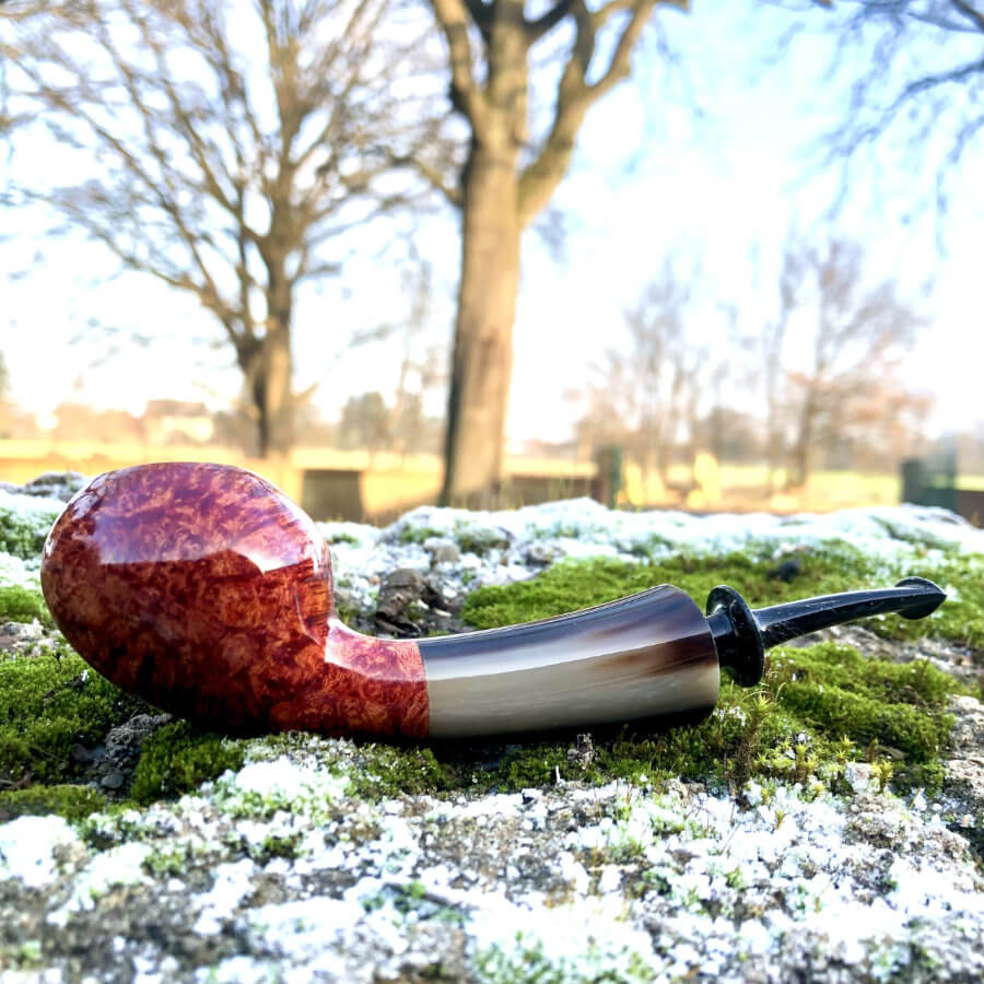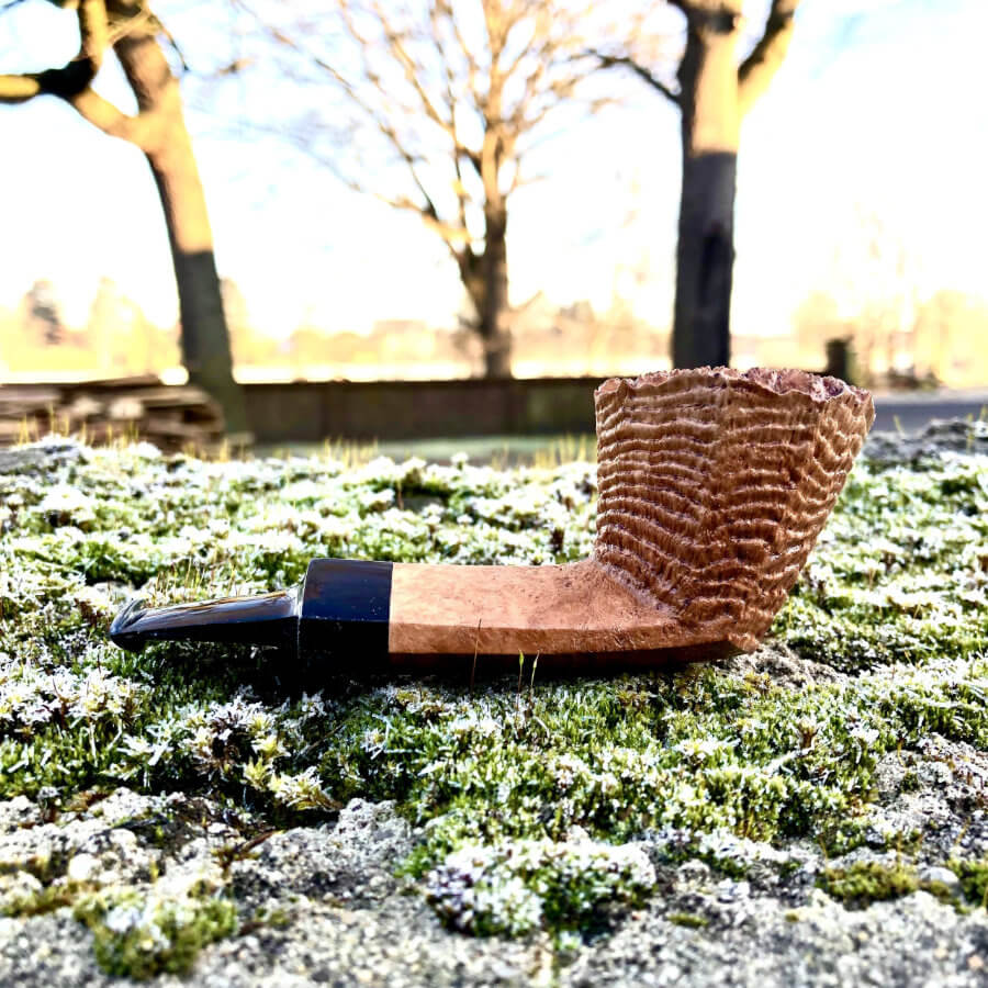 Dirk n'a pas de fournisseur de bruyère attitré, il travaille aussi bien avec Mimmo qu'avec Jaume Hom, ou via d'autres sources. Ses tuyaux sont généralement en ébonite, il emploie aussi l'os, la corne ou des bois, mais préfère limiter les ajouts et décorations. Ses pipes sont lisses ou rustiquées, il espère pouvoir se procurer une sableuse, mais ça ne sera pas pour 2013.