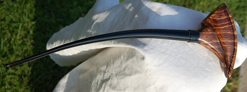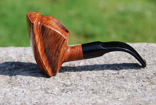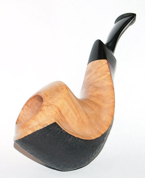Il se fournit en bruyère chez Jean-Pierre Soler, et se contente de laisser les plateaux reposer dans son atelier. Il a fait un ou deux tuyaux en acrylique, et s'il apprécie les résultats obtenus avec cette matière, l'ébonite a sa préférence. Pas de décorations, quelques incrustations ont été ses seules exceptions.