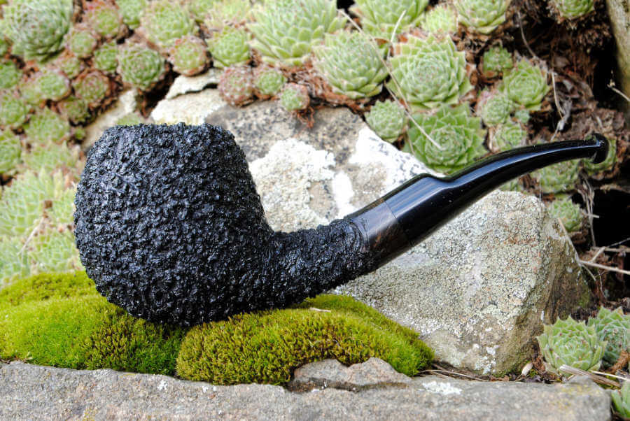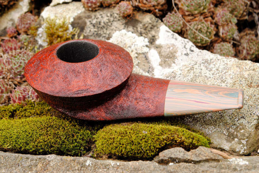 Sa bruyère vient désormais de chez Mimmo, et sa préférnce va à l'ébonite allemande de chez Sem ou Nyh. Il peut y ajouter des bagues ou des allonges en bambou, bois exotiques ou corne. Il n'apprécie pas les métaux, trop froids à son goût.